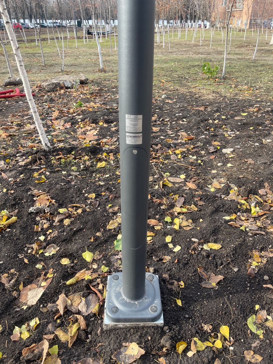 Șuruburile și piulițele pentru fixarea stalpilor de iluminat pe fundațile din beton sunt protejate împotriva slăbirii și coroziunii prin capace de protecție care rezistă la intemperii și daune mecanice.